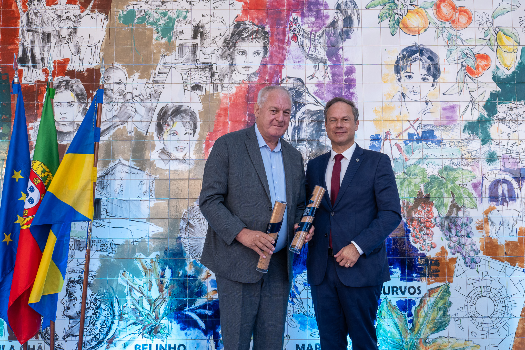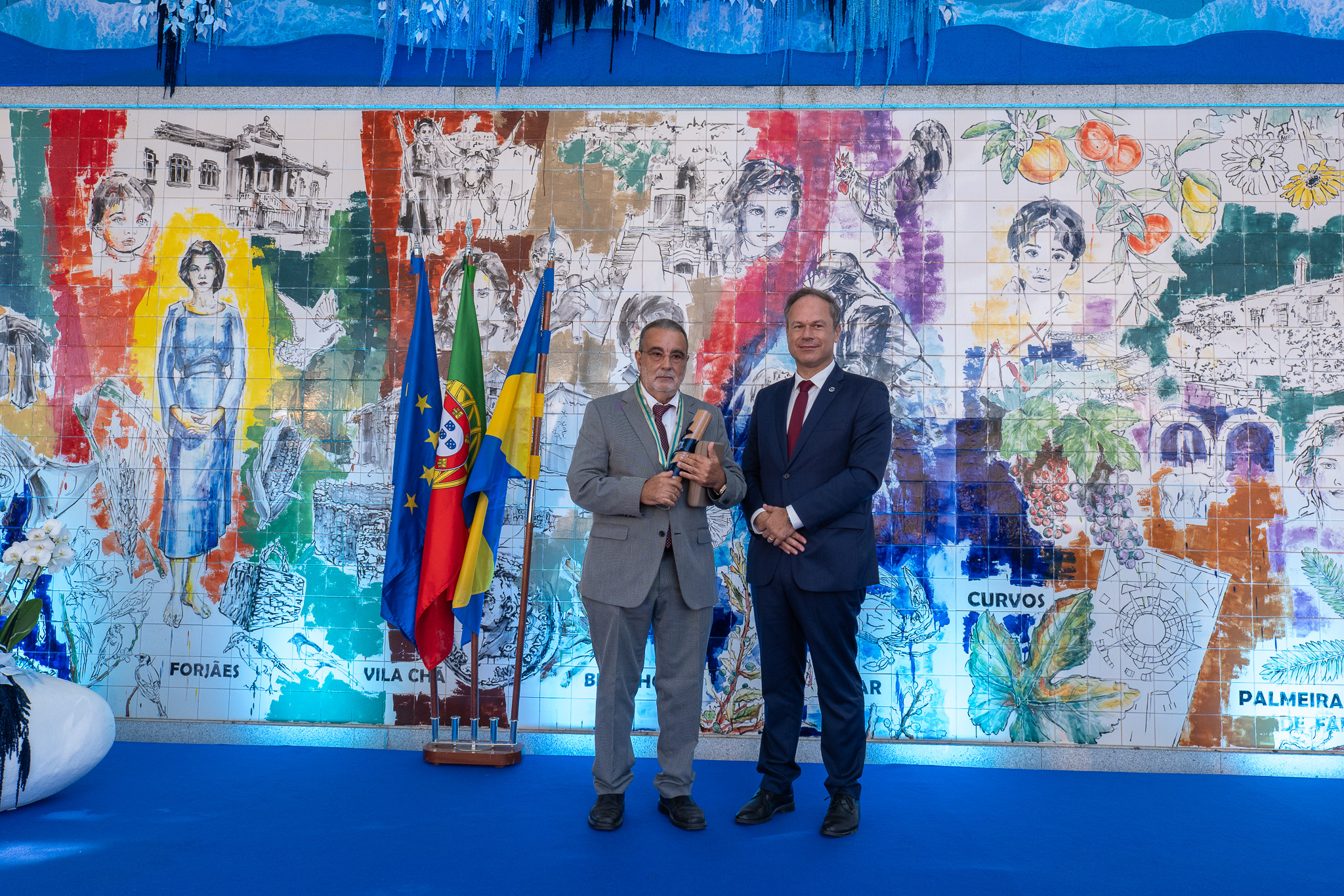 Description: | No dia 19 de agosto de 2025, comemorou-se o 32.º aniversário da elevação de Esposende a cidade e os 453 anos da fundação do concelho. O programa comemorativo iniciou com o Hastear das Bandeiras, na Praça do Município, com o contributo musical da Banda de Música de Belinho, sob a direção do maestro Élson Pinho, e de Ana Sofia Vintena, que interpretou “A Portuguesa” e “Cidade de Esposende”. Seguiu-se a Missa Solene na Igreja Matriz, celebrada pelo Arcipreste de Esposende, Padre Rui Neiva, finda a qual decorreu a Sessão Solene, na Praça D. Sebastião, que iniciou com um momento musical, com a interpretação de Ana Sofia Vintena e do Ensemble da Banda de Música de Belinho que interpretaram os seguintes temas com arranjos de Élson Pinho: “Senhora do Mar”, de Vânia Fernandes, “Ó Gente da Minha Terra”, de Mariza, e “Quero é Viver”, de António Variações. Nesta sessão foram agraciados seis cidadãos, duas instituições e sete colaboradores do Município de Esposende. Com a Medalha de Mérito Municipal foi agraciado o Sargento-Mor Maquinista Naval José Carlos Martins Fernandes que, nos últimos três anos, desempenhou funções como adjunto do Capitão do Porto de Viana do Castelo, tendo estado destacado na Delegação Marítima de Esposende, onde se evidenciou pela proximidade com a comunidade local. A mesma distinção foi entregue ao empresário do setor das energias renováveis António Lima Teixeira e a Francisco Manuel Pinto Vilarinho Rodrigues, profissional na área da logística, bem como às associações Águias de Serpa Pinto e Centro Social da Juventude de Mar, que celebram o 50.º aniversário e que foram reconhecidas pela atividade que desenvolvem a favor da causa pública. A Medalha de Mérito Cultural foi entregue à artista plástica Celeste José Tavares Ferreira, ao maestro Diogo Manuel Almeida Costa e à cantora Joana Patrícia Marques Pereira Veloso (Joana d’Arc). Pelo zelo e profissionalismo com que desempenharam as suas funções na Câmara Municipal de Esposende, ao longo de 25 anos, foram distinguidos: António Pedro Rodrigues Teles, Carlos Jorge dos Santos Amaral Fernandes, Carlos Miguel Tomé Felgueiras, Maria de Fátima de Araújo e Sá, Maria de Fátima Eiras Martins Novo, Paulo Augusto Guimarães Silva Gonçalves e Pedro Manuel de Barreira Losa. Na sessão solene do Dia da Cidade e do Município foram, ainda, entregues os votos de louvor aprovados pelo Município aos padres Avelino Peres Filipe, Armindo Patrão de Abreu, Manuel Domingos Sampaio Viana, Manuel de Brito Ferreira e António da Silva Lima, pelo serviço pastoral prestado em paróquias do Arciprestado de Esposende, ao qual já não se encontram afetos. Receberam, também, votos de louvor, o padre Delfim Duarte Fernandes, pelos 25 anos de serviço pastoral na paróquia de Santa Maria do Anjos, em Esposende, celebrados em setembro do ano passado, bem como o padre Rui Jorge Neiva, Arcipreste de Esposende para o quinquénio 2023 - 2028, pela celebração das Bodas de Prata Sacerdotais, no passado dia 23 de julho. Com esta distinção pretendeu-se reconhecer, publicamente, o seu inestimável contributo para o bem-estar espiritual, comunitário e social das freguesias e populações. Na sessão solene intervieram o Presidente da Câmara Municipal de S. Domingos - Cabo Verde (município geminado com Esposende), Isaías Varela, o Presidente da Assembleia Municipal de Esposende, Otílio Hipólito, e o Presidente da Câmara Municipal de Esposende, Guilherme Emílio. O programa festivo encerrou com o Concerto de Pedro Abrunhosa & Banda de Antas, na Zona Ribeirinha de Esposende. |