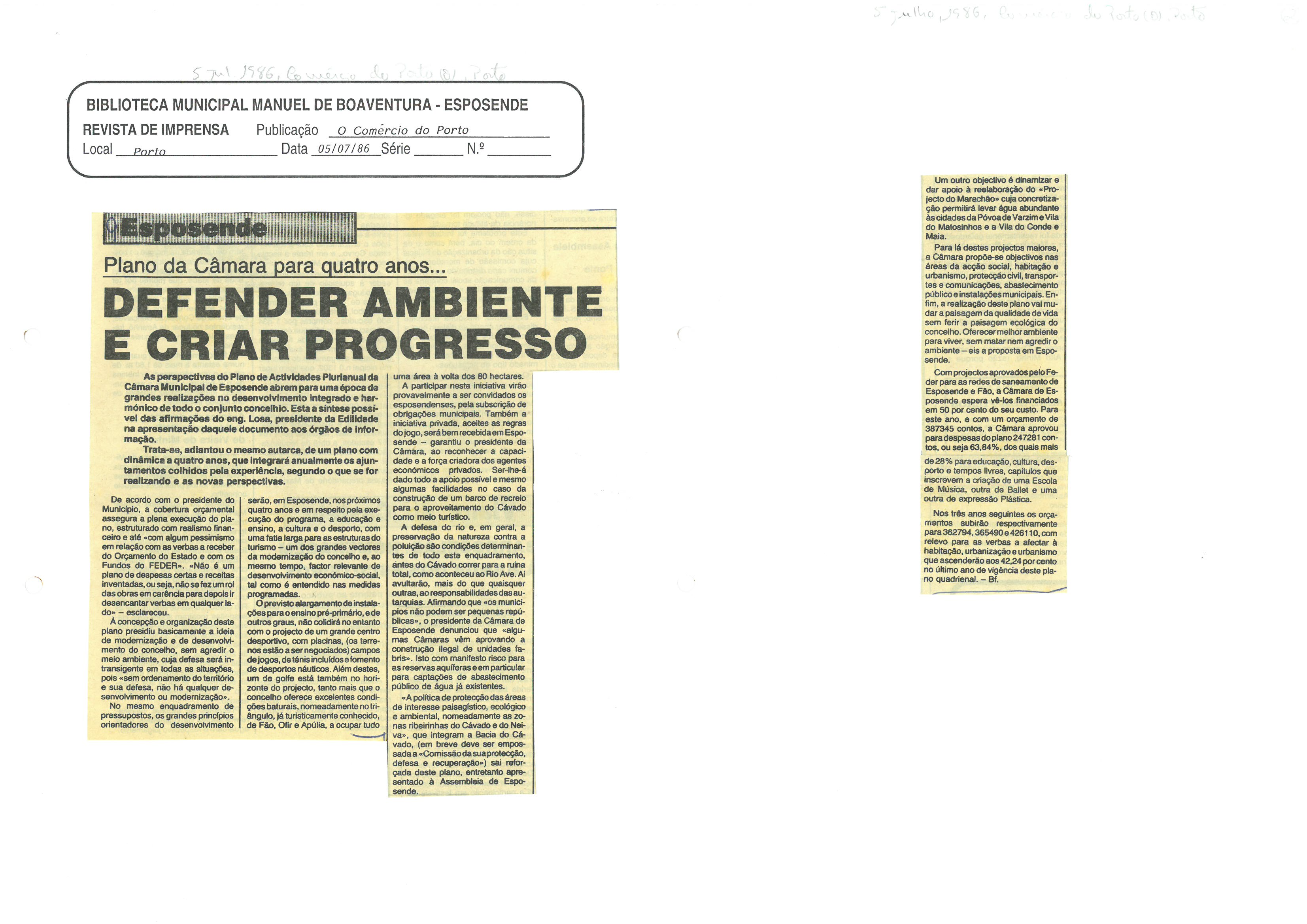 | Documentary history: | Artigo retirado da publicação "O Comércio do Porto", de 5 de julho de 1986. |