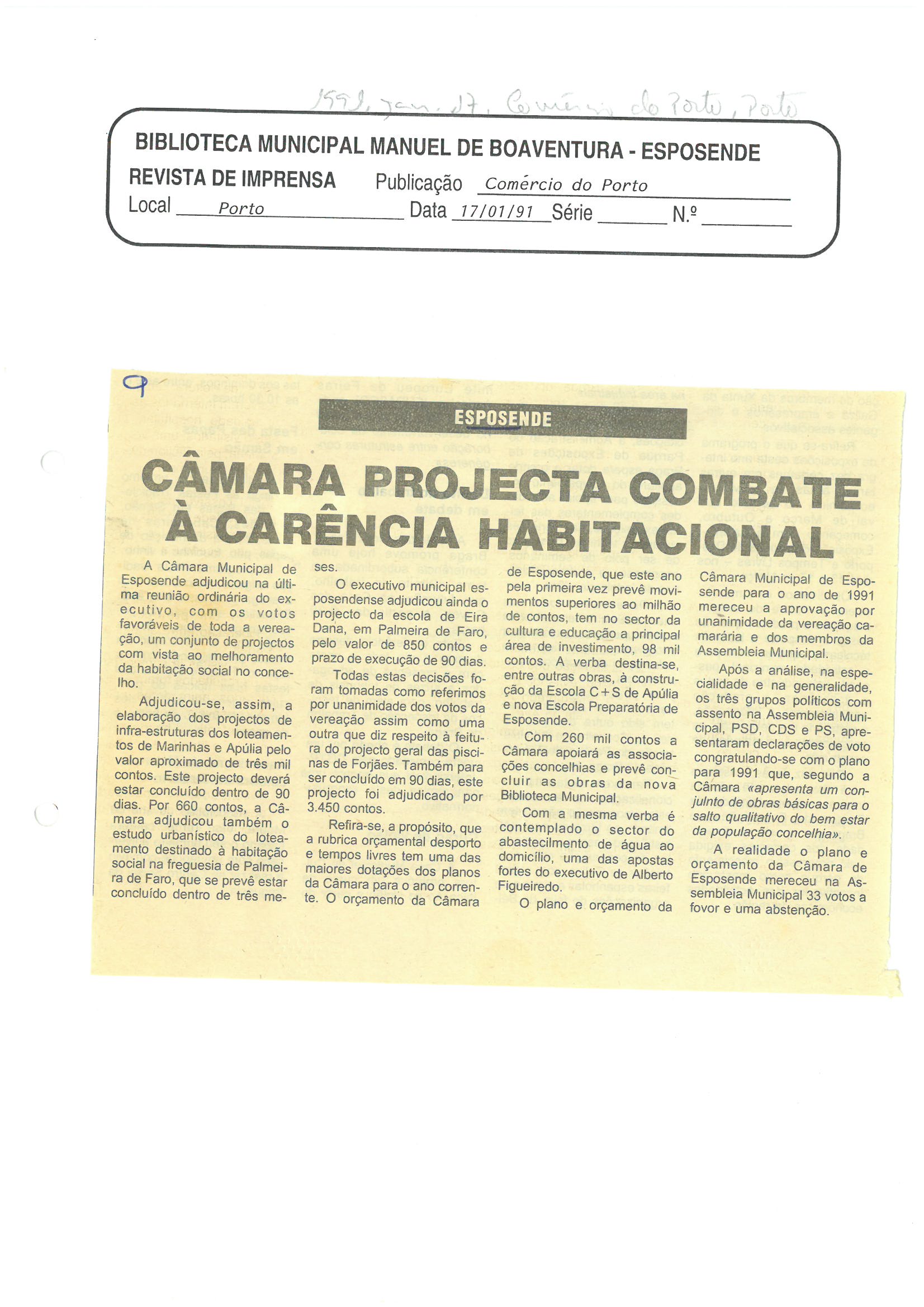 TítuloEsposende: Câmara projecta combate à carência habitacional - 1991
