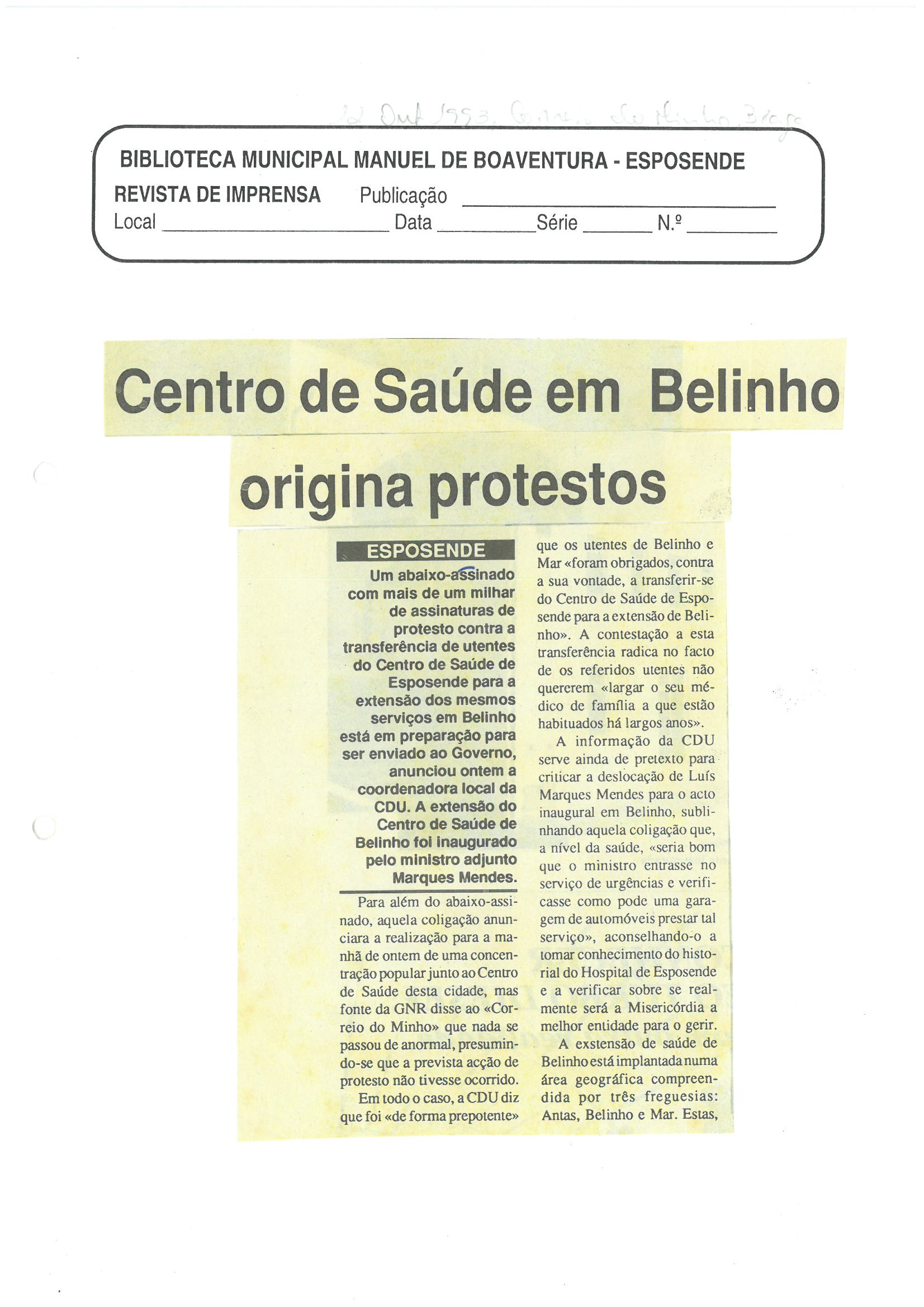 | 12_10_1993_CorreiodoMin.jpg | Centro de Saúde em Belinho origina protestos - 1993 | 358.02 kB | JPEG | ![]() Ver/Abrir |
