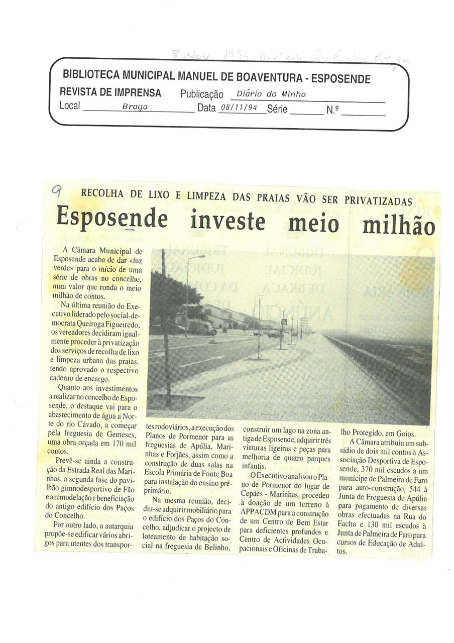 | 08_11_94_DiáriodoM.jpg | Recolha de lixo e limpeza das praias vão ser privatizadas: Esposende investe meio milhão - 1994 | 279.03 kB | JPEG | ![]() Ver/Abrir |